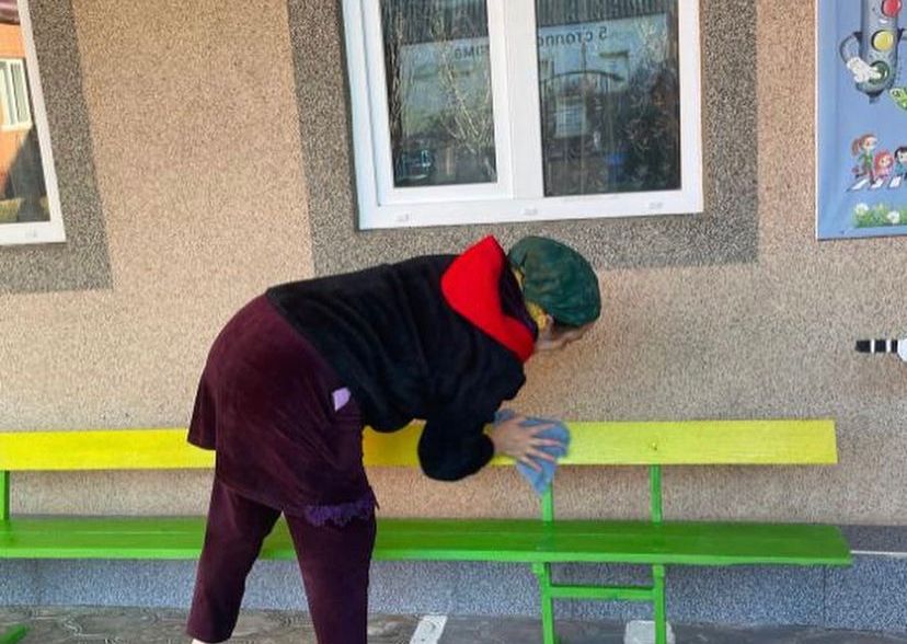 Коллектив МБДОУ "ДЕТСКИЙ САД №1 "ТОПОЛЕК" С.НАГОРНОЕ ГРОЗНЕНСКОГОМУНИЦИПАЛЬНОГО РАЙОНА" на субботнике.