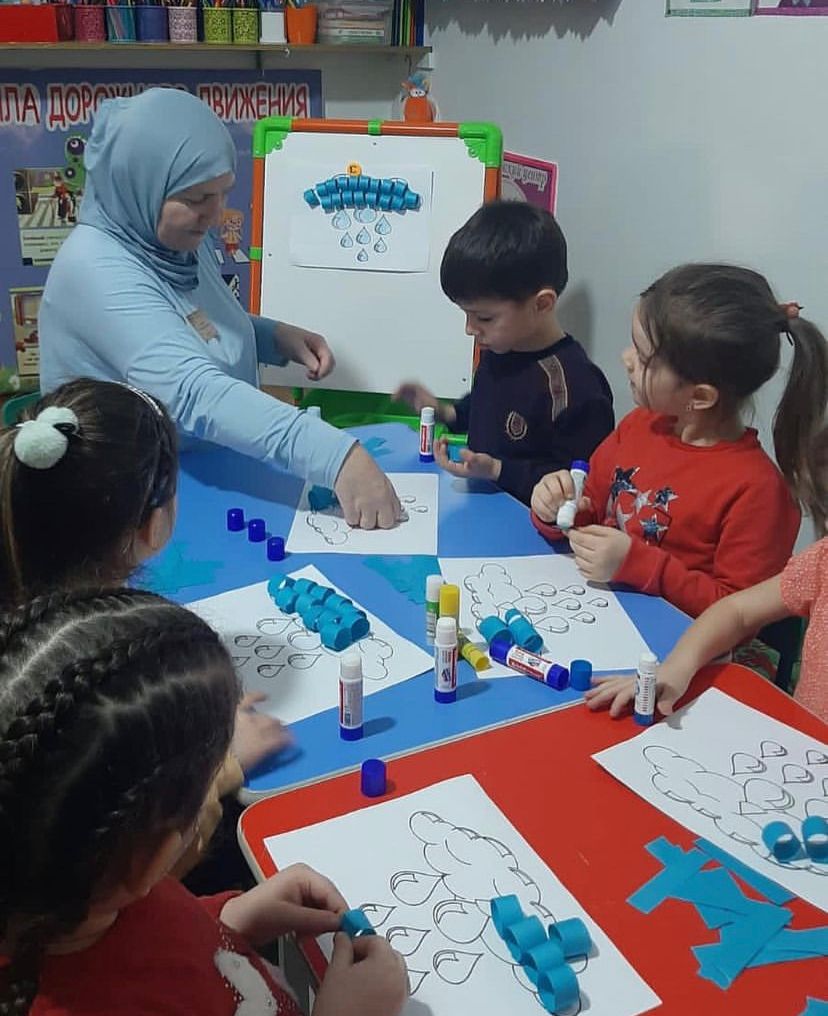 01.02.2022В старшей группе «Смешарики» была проведена аппликация «Весёлые тучки».Цель данной аппликации: учить детей понимать простейшие связи в природе; подвести детей к пониманию того, почему идёт дождик; продолжать учить детей работать в коллективе.