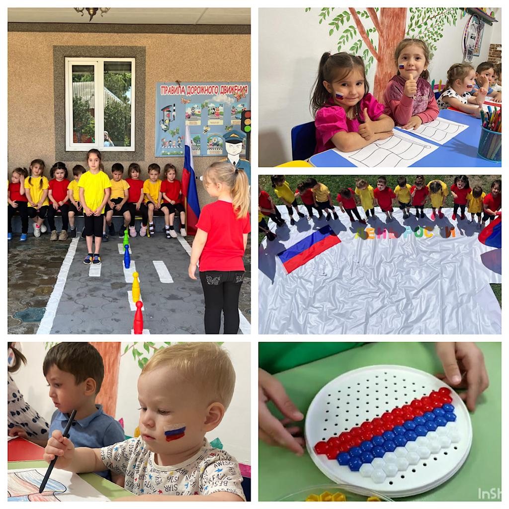 В соответствии плану работы ДОУ на летний оздоровительный период на 2023 год, 12 июня в детском саду были проведены мероприятия посвященные празднованию Дня России (12 июня).